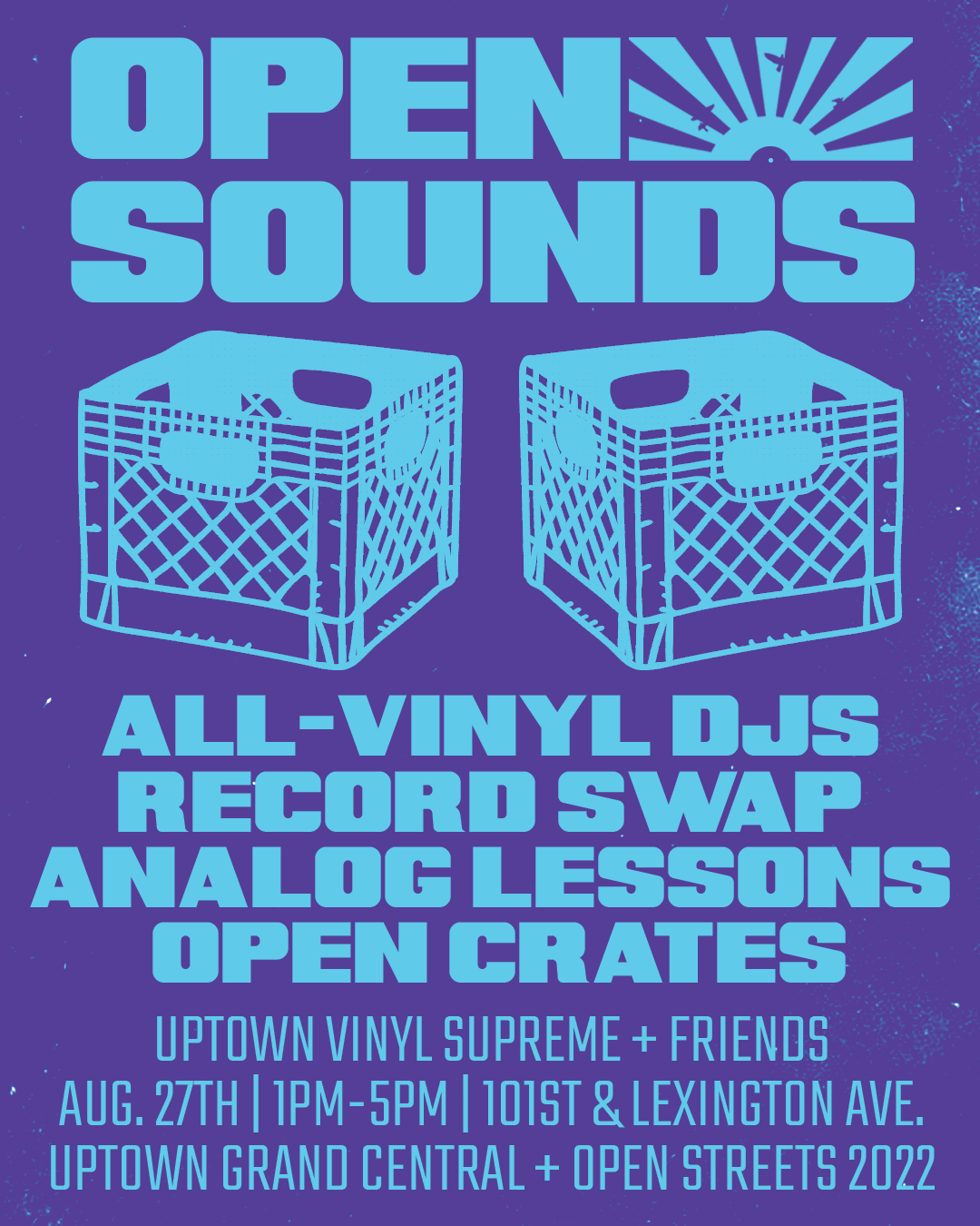 In 2022, Harlem-based CBO, Uptown Grand Central, sought a live music element for their monthly “Open Streets” activations in Spanish Harlem. “Open Sounds” was created to fulfill this request by platforming an open call for live vinyl DJs, analog playing lessons for visitors, record vending/swapping, and several community-centric playlists.